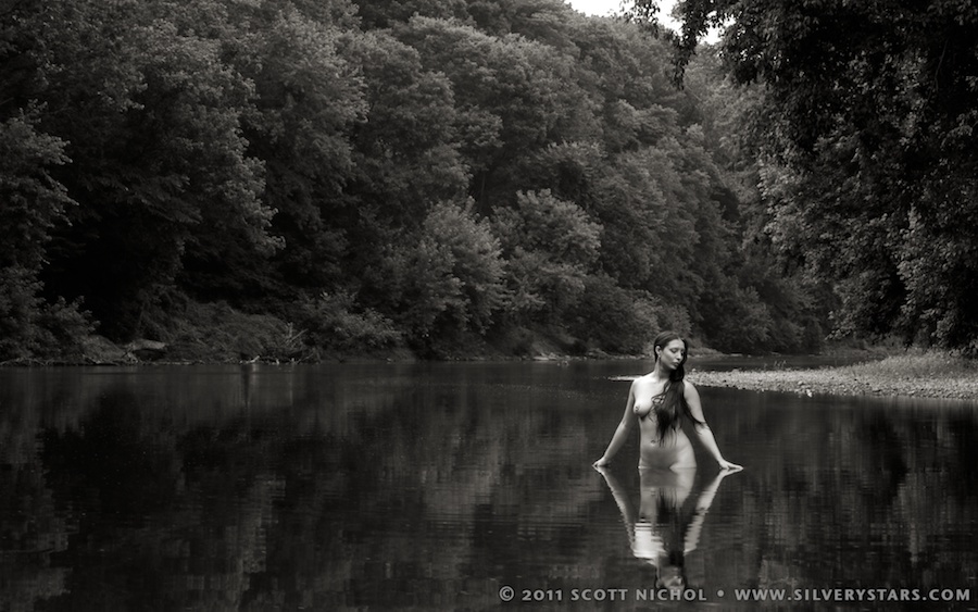 Another shot from the book in the still air, which is available for purchase now. This was taken early in July of 2007 on a day with two new models that I had met from Frederick, MD. Sister Dee was totally uninhibitied and just swam out mid-stream and just gave me that peaceful, serene look that really just nailed this shot.